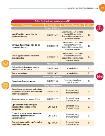 Tabla indicadores estándares GRI