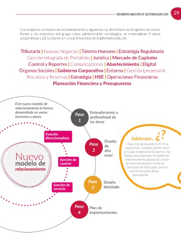 Con respecto al modelo de relacionamiento y siguiendo las directrices de Ecopetrol de actuar